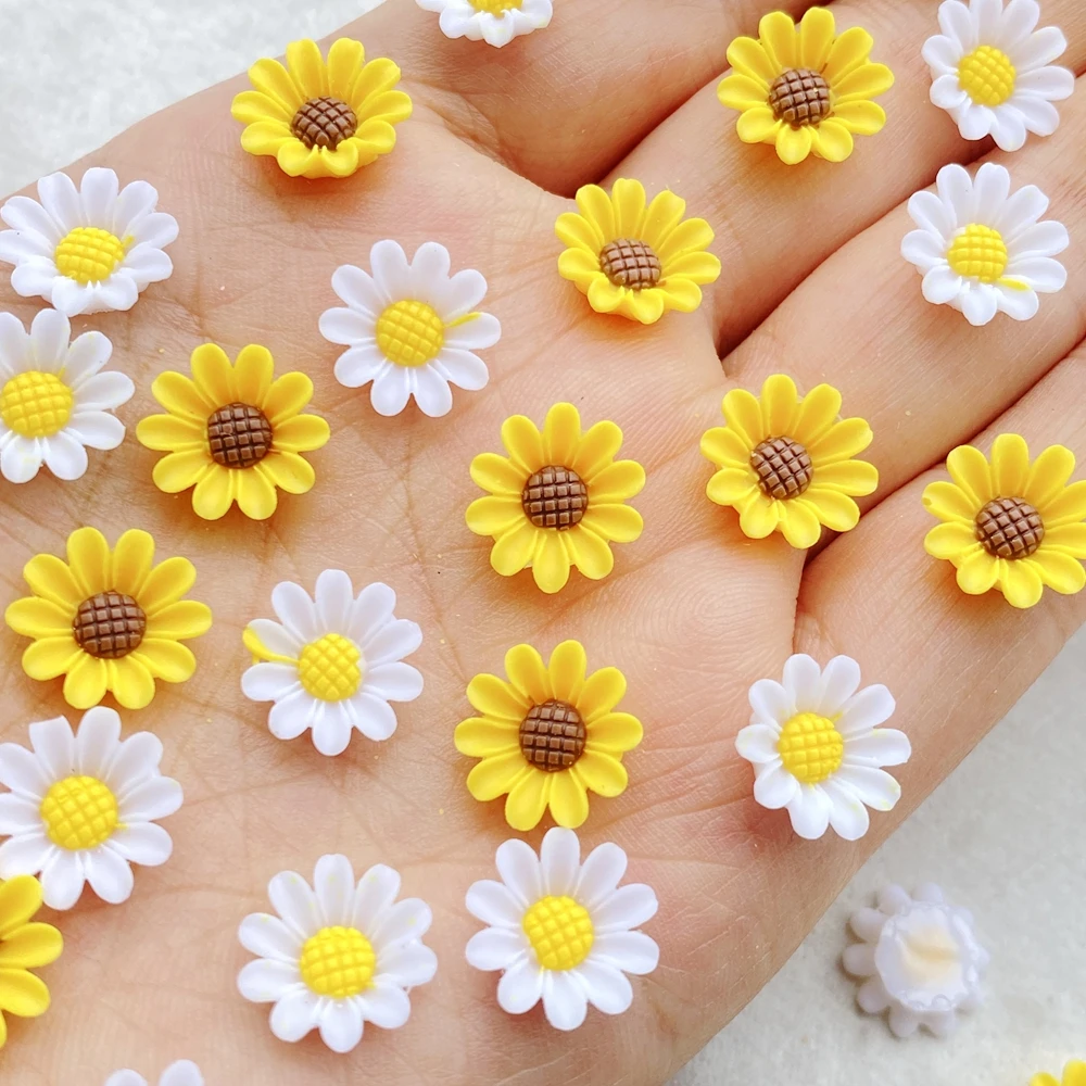50Pcs 12mm Resin 3D Colorful Mini Sunflower Flower Gems Flatback Figurines Scrapbook Wedding Applique Nail Art Decor Crafts