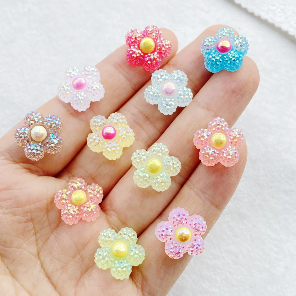 30pcs Colorful Resin Kawaii Cute Shiny Flowers Nail Art Flat back Stone Figurines Scrapbook DIY Manicures Appliques Crafts