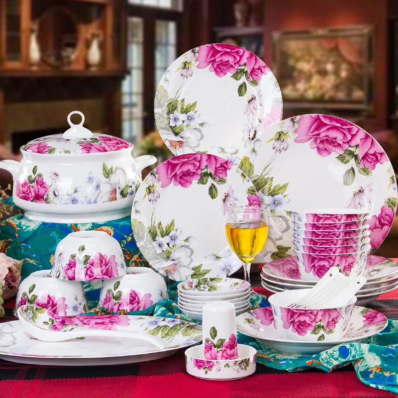 [Royal] joy Jingdezhen pottery bowl dish head 56 head bone china tableware set
