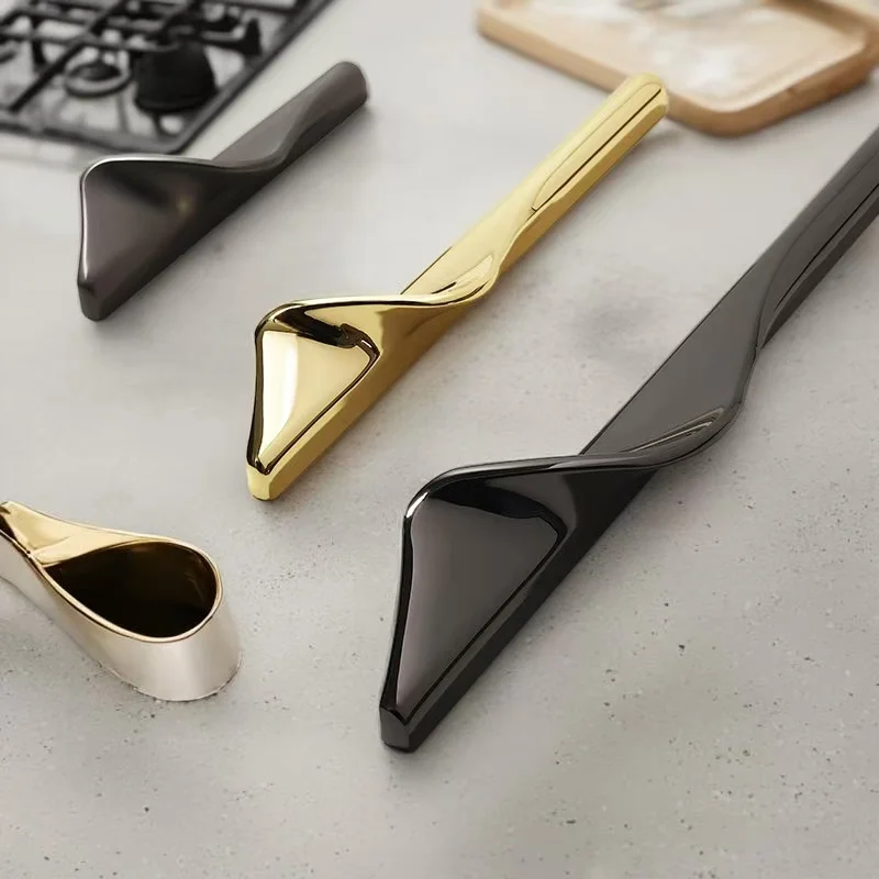 S-Shaped Titanium Black Wardrobe Door Handles Zinc Alloy Cabinet Handle Gold Dresser Drawer Knobs Gray Kitchen Furniture Handles