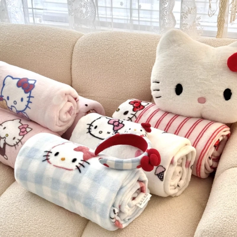 Cartoon Kt Cat Double-Sided Milk Silk Plush Blanket Cute Hello Kitty Travel Shawl Nap Blanket Sofa Plush Blanket Exquisite Gift