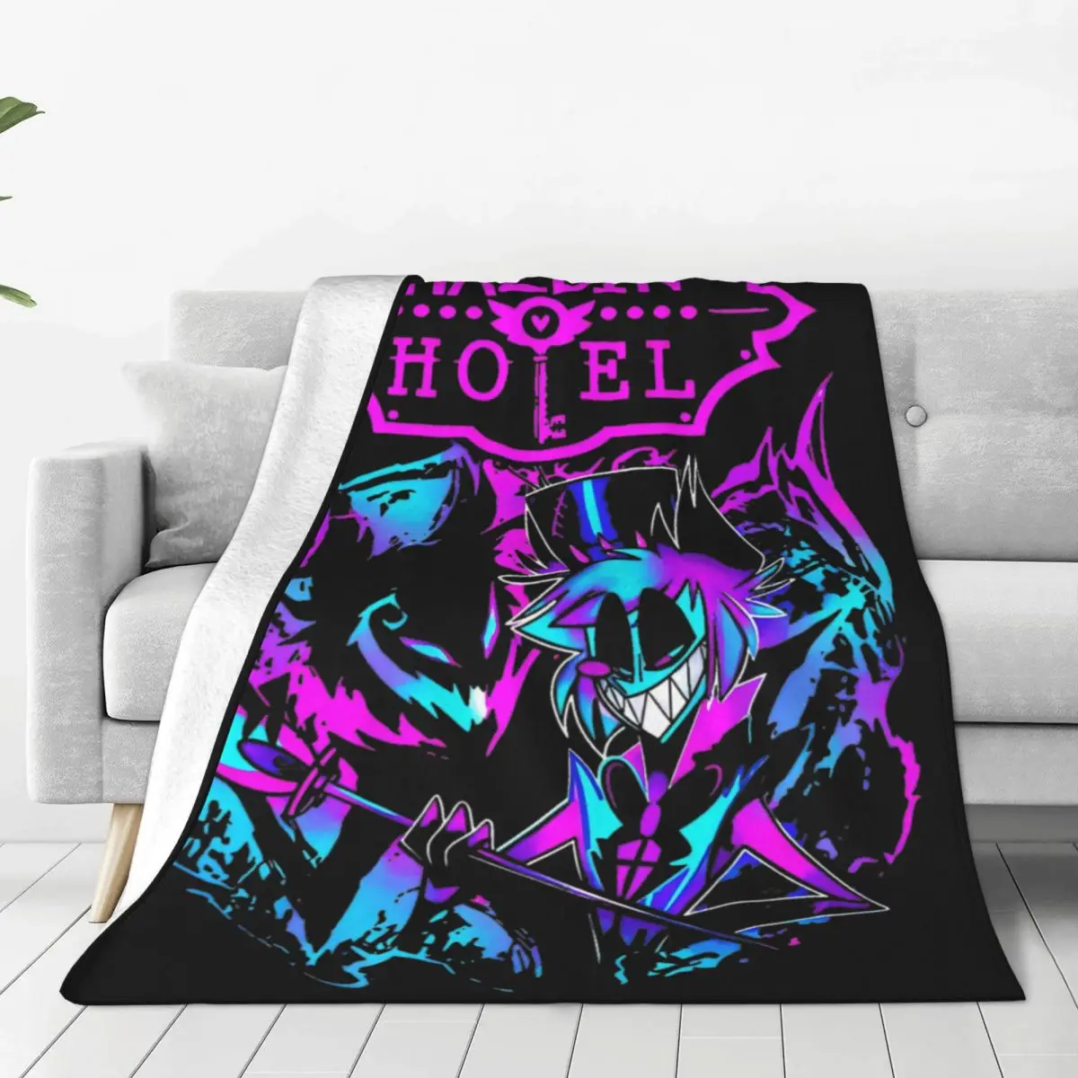 Hazbin Alastor Cartoon Hotels Knitted Blankets Anime Action Flannel Throw Blanket Bedroom Sofa Printed Ultra-Soft Warm Bedspread