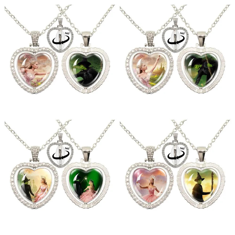 HOT Movie Wicked Glinda Elphaba Double Sided Peach Heart Rotating Musical Play Poster photo Pendant Necklace Jewelry Gifts