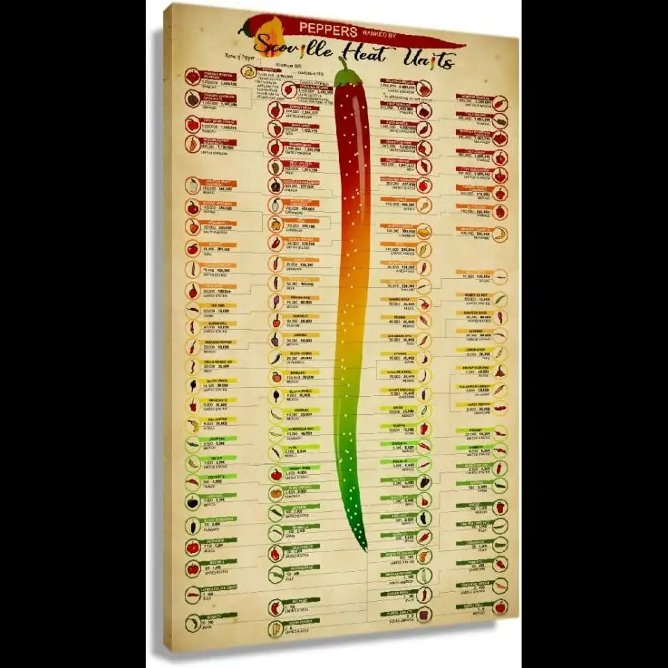 Vintage Scoville Scale Framed Poster Chili Pepper Heat Chart Canvas Print Kitchen Wall Art Decor