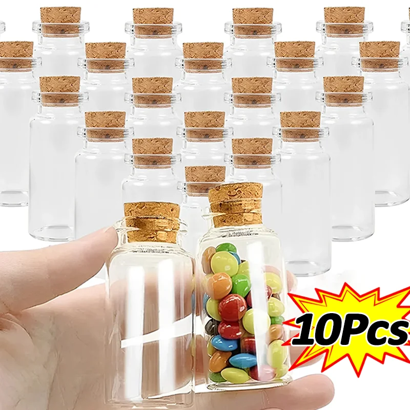 10Pcs 5ml-20ml Small Glass Bottles with Cork Stopper DIY Decoration Mini Transparent Wishing Bottle Candy Jar Storage Glass Jar