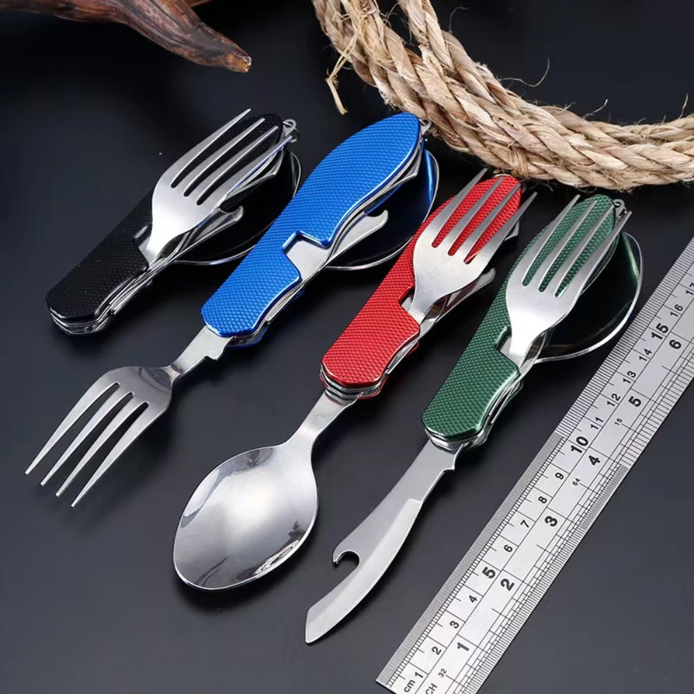 Foldable Knife Fork Spoon Bottle Opener Folding Pocket Cutlery Set Stainless Steel cutlery 4 In 1 Outdoor Picnic Tableware