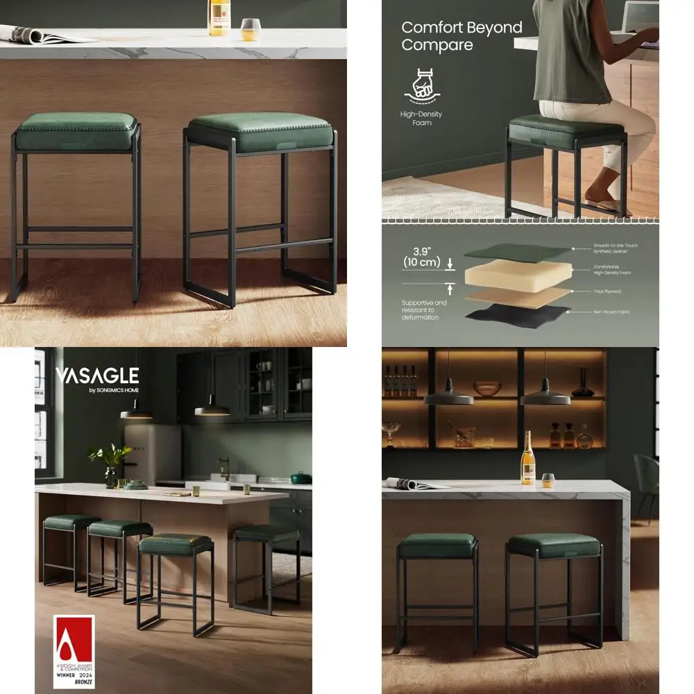 ekho collection - bar stools set of 2, counter height bar stools, synthetic leather with stitching, mid-century modern counter