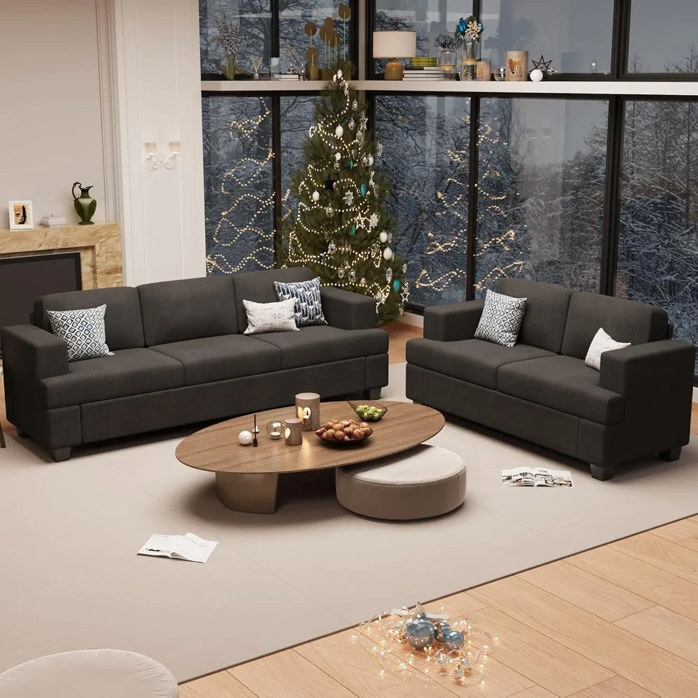 5 Seats Sofa Set, 2 Piece Set Comfy Couch, 3 Seater & Loveseat Sofa with Deep Seats for Living Room, Modern Sleeper Couch