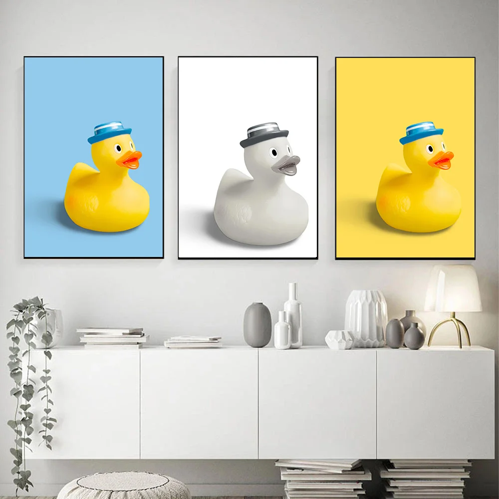 Rubber Duck Black and White Blue Yellow Poster Print Wall Art Pictures Canvas Painting Living Room Bedroom Home Decor Gift