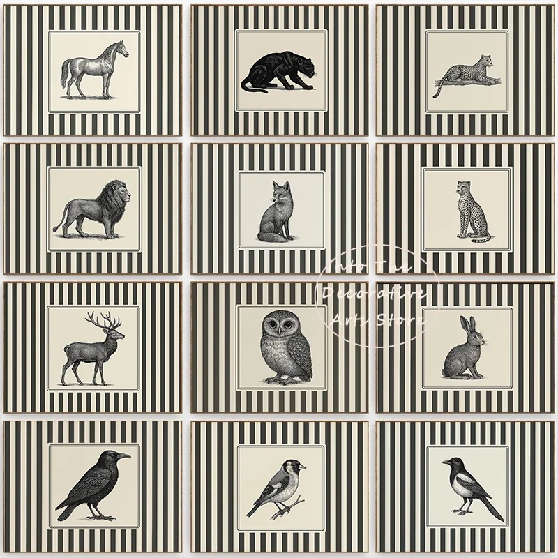 Black and White Striped Line Animal Tiger Lion Rabbit Pattern Posters Child Prints Canvas Paintings Wall Art Pictures Home Decor