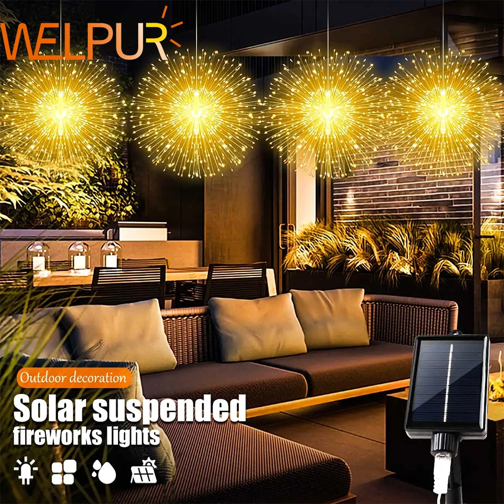 Solar Outdoor Decorations String Lights Hanging Bursting Star Lights Copper Wire Firework Lights For Patio Party Tent Decoration