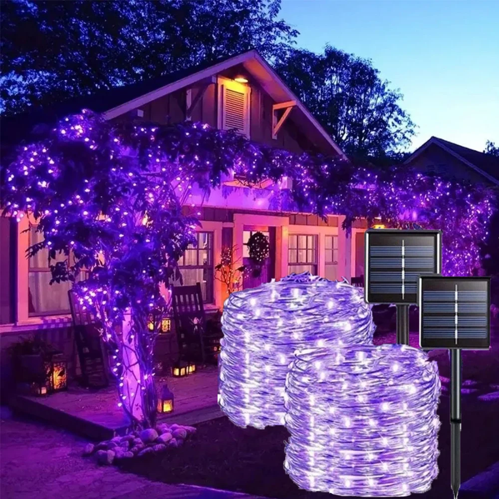 32m300led Copper Wire solar String Lights Halloween Purple Fairy Light 8 Mode Outdoor Street Christmas Garland Party Decoration