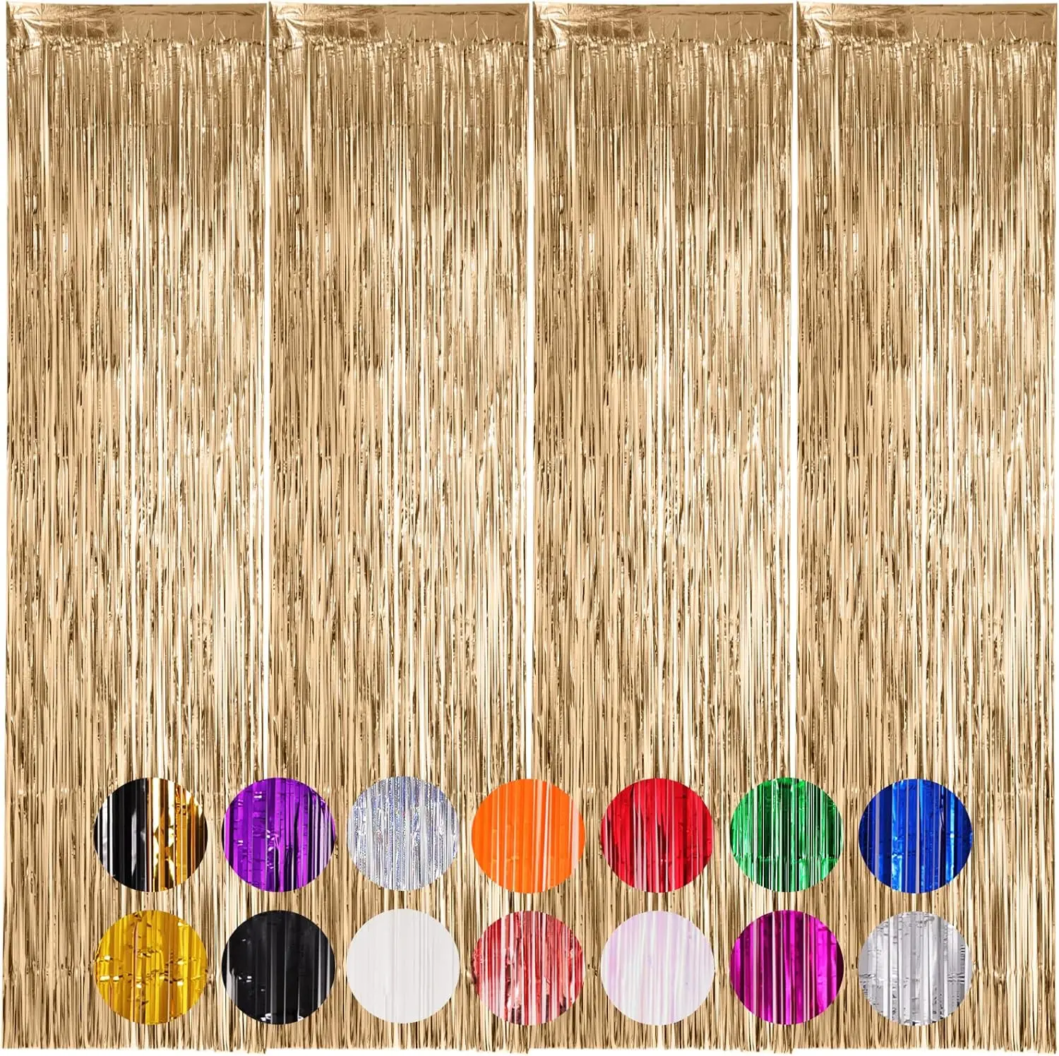 4pack Champagne Tassel Background Decoration Set Metallic Foil Tassel Curtain Background Suitable for important scene