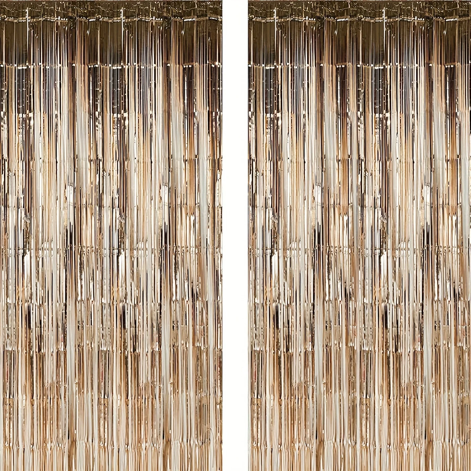 2pack Champagne Tassel Background Decoration Set Metallic Foil Tassel Curtain Background Suitable for important scene