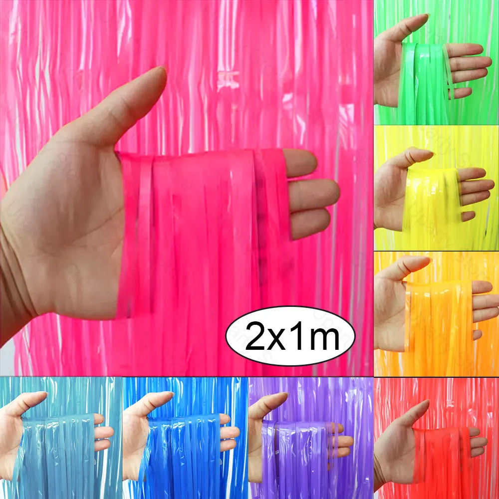2X1M Neon Foil Tassel Curtain Yellow Orange Green Hot Pink Neon Shimmer Fringe Curtains for Neon Birthday Backdrop Decoration