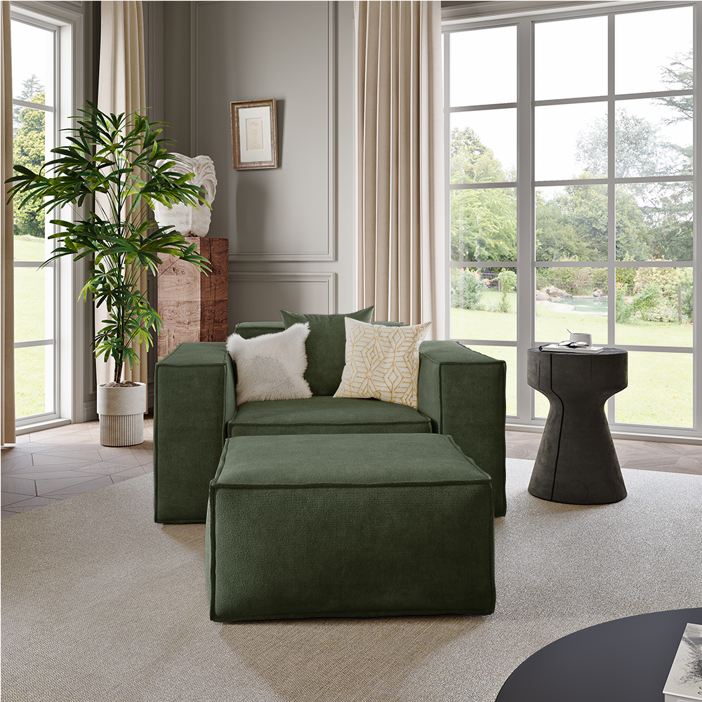 51.96" Minimalist Accent Chair with Ottoman, Deep Seat Couch, Anti-scratch and Water-proof, Green