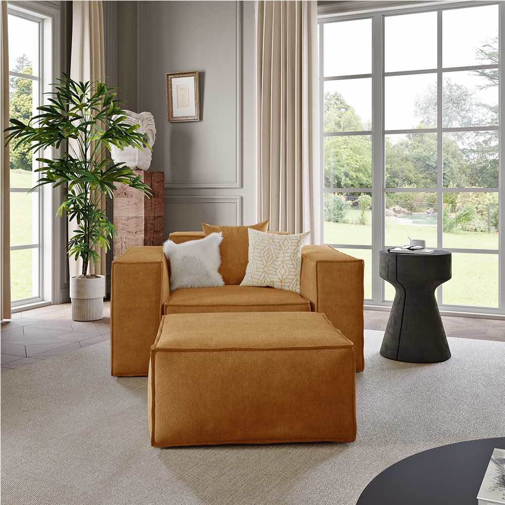 51.96" Minimalist Accent Chair with Ottoman, Deep Seat Couch, Anti-scratch and Water-proof, Yellow