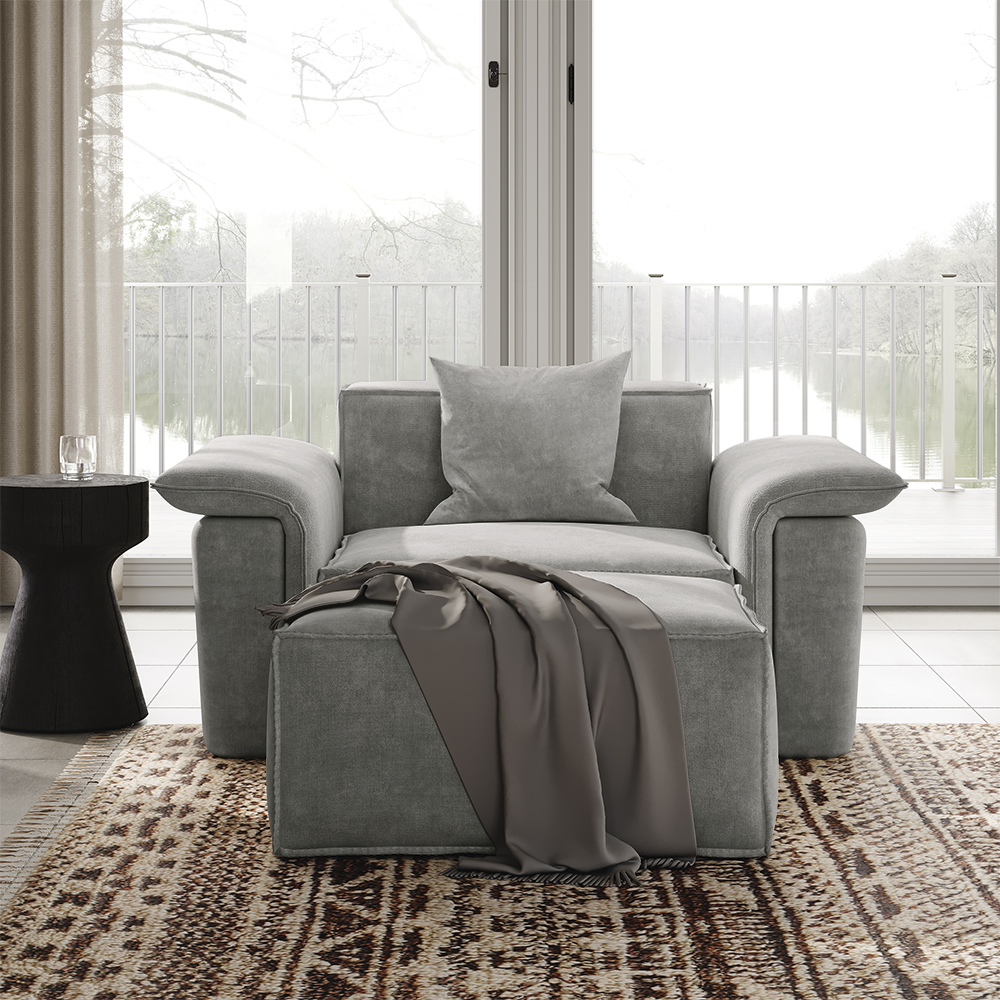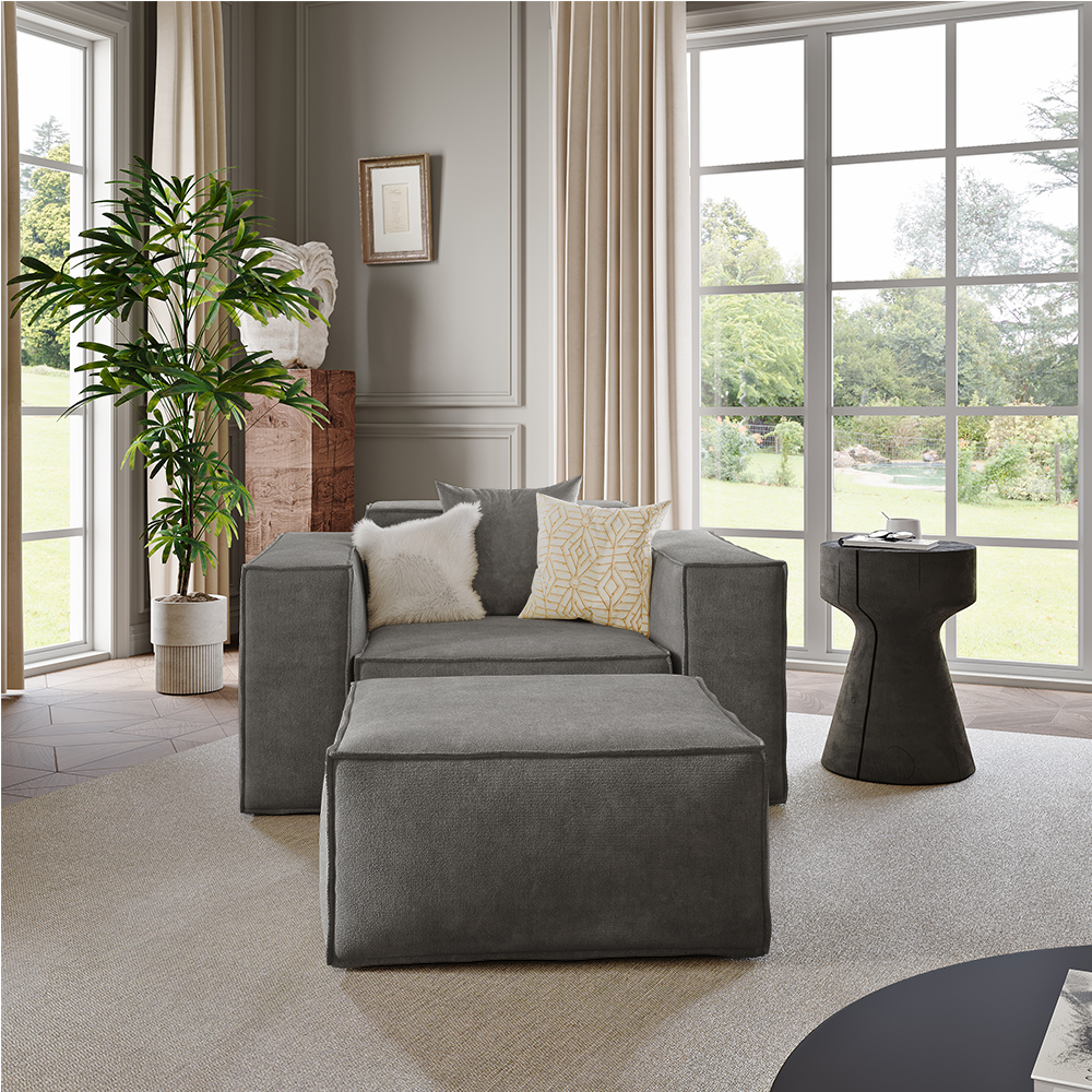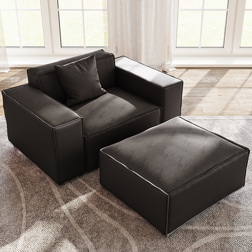 51.96" Minimalist Accent Chair with Ottoman, Deep Seat Couch, Anti-scratch and Water-proof, Dark Gray