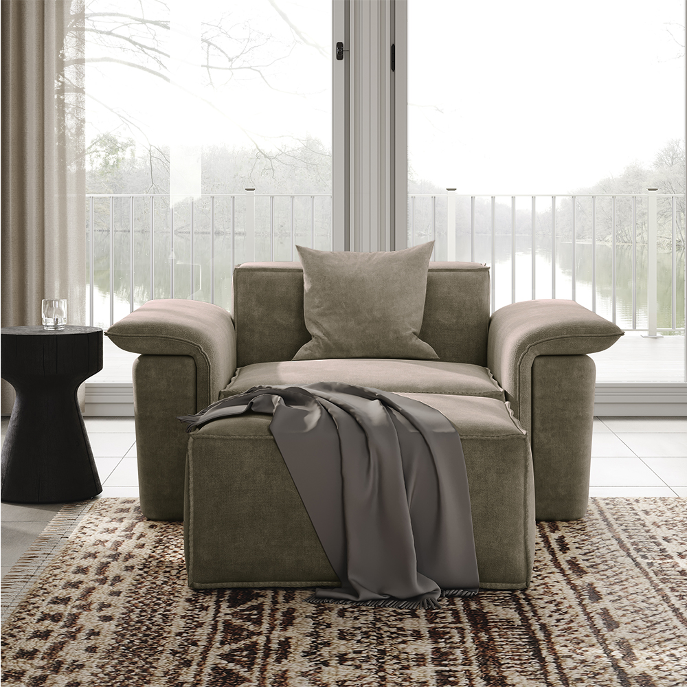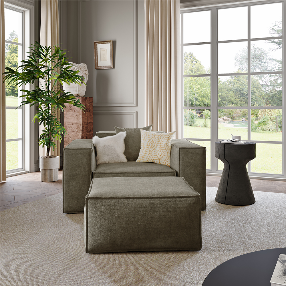 51.96" Minimalist Accent Chair with Ottoman, Deep Seat Couch, Anti-scratch and Water-proof, Khaki