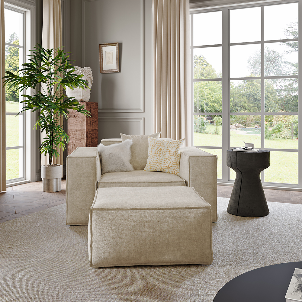 51.96" Minimalist Accent Chair with Ottoman, Deep Seat Couch, Anti-scratch and Water-proof, Beige