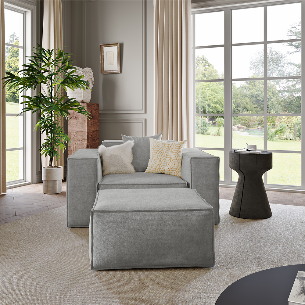 51.96" Minimalist Accent Chair with Ottoman, Deep Seat Couch, Anti-scratch and Water-proof, Light Gray