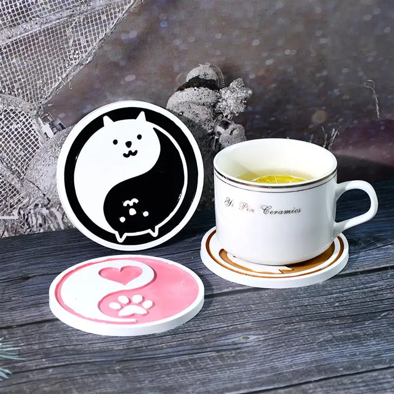 Pet Cat Coaster Silicone Mold Epoxy Resin Crystal Plaster Concrete Mold DIY Round Coffee Wine Glass Tea Coaster Tray Home Decor