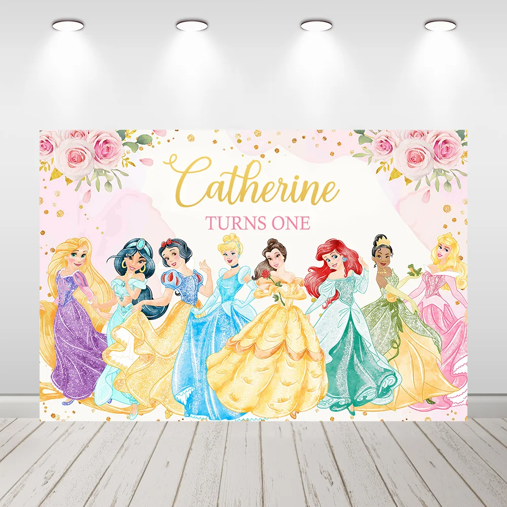 Disney Watercolor Princess Birthday Decoraiton Photography Background Customize Name Girl 1st Birthday Backdrop for Photo Studio