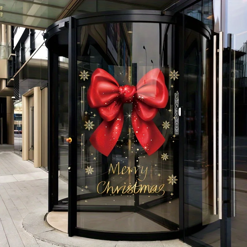 1 Piece 45Cm*60Cm Christmas Decoration, Bow Pattern Glass Stickers, Suitable for Restaurants, Schools, Hotels, Stores, Home Decoration Window Stickers, Electrostatic Adsorption Spray Stickers,