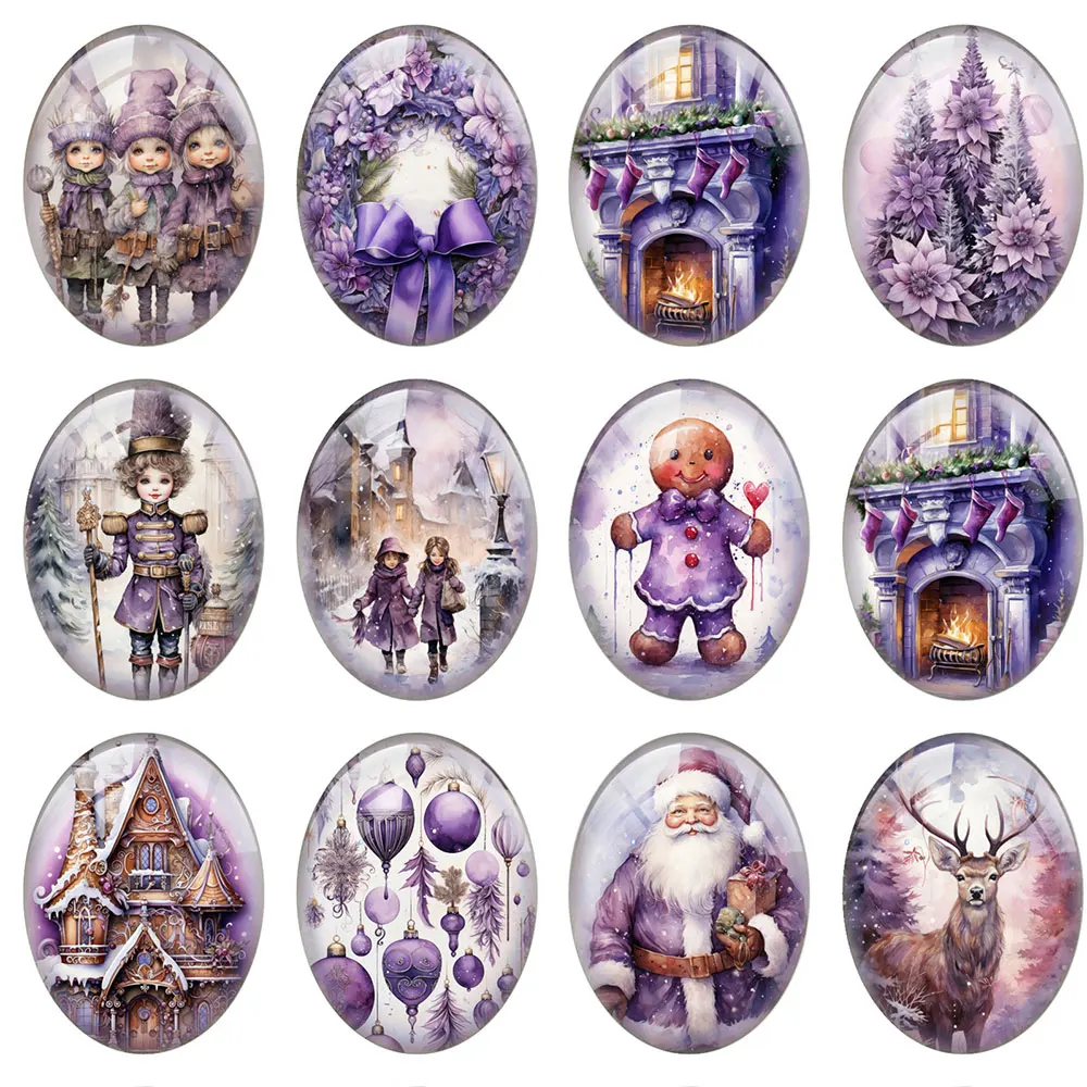 10pcs/lot Christmas X-mas Winter Purple Gingerbread Tree Oval Photo Glass Cabochon Flatback Demo Cameo For Diy Jewelry Making