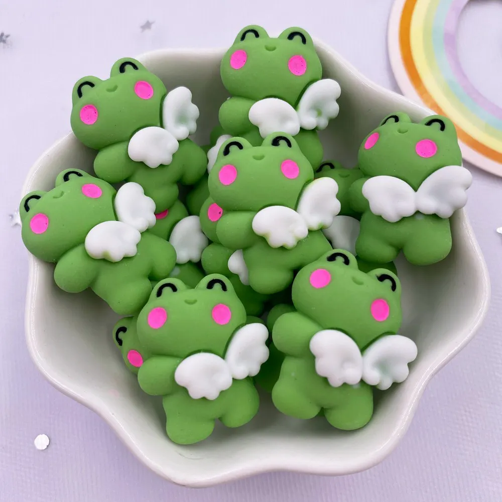 10Pcs Resin Colorful Kawaii Green angel frog Flatback Cabochon Figurine Christmas Decor Accessorie DIY Hair bow Scrapbook Crafts