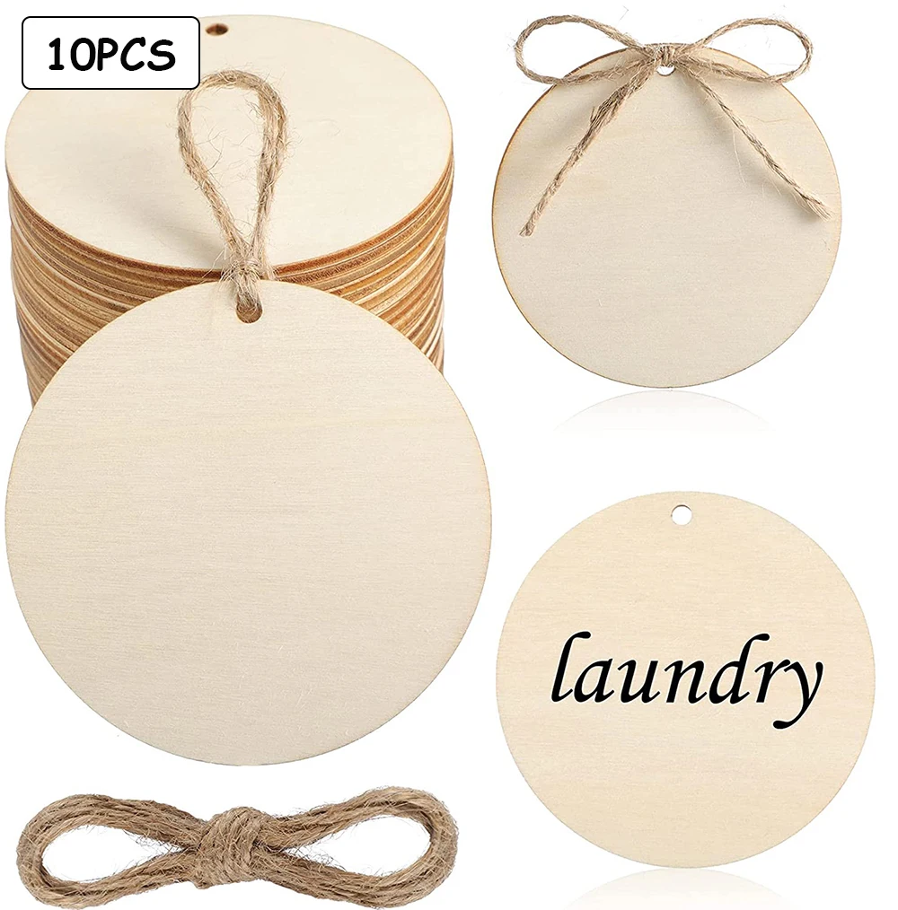 20/10pcs 7.5CM Natural Unfinished Round Wood Slices With Hole Blank Round Wood Gift Tags Ornaments for Christmas Home Decor