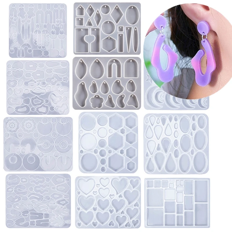 Resin Earrings Mold Geometric Flower Heart Irregular Mould Unique Earring Silicone Molds for Epoxy Resin Crafts Christmas Molds