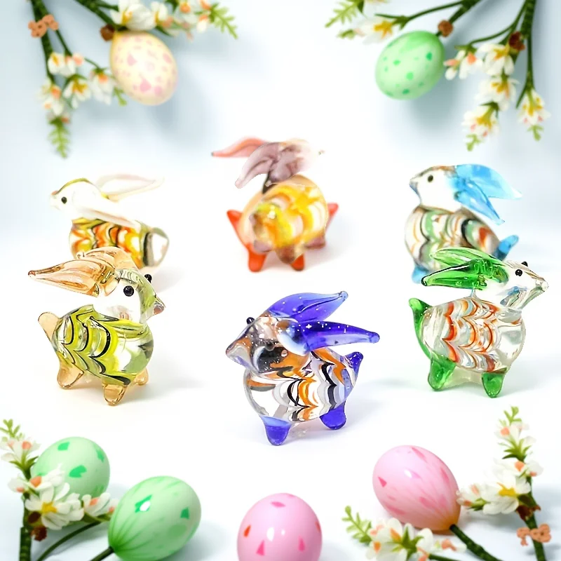 Easter Animal Decor Miniature Glass Rabbit Figurine Crafts Cute Bunny Ornament Home Desk Fairy Garden Bonsai Decoration Supplies