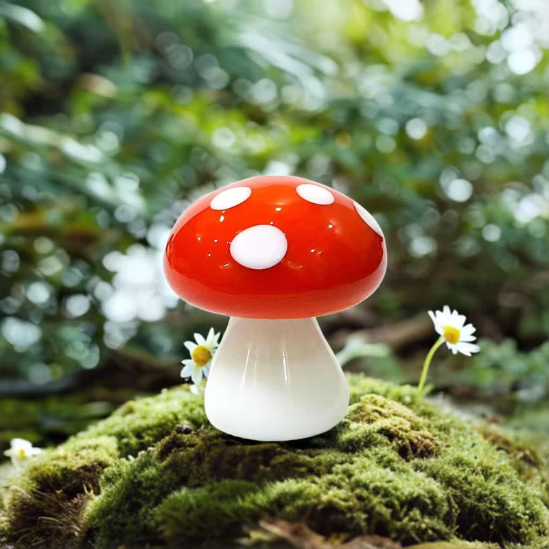 Cute Murano Glass Mushroom Miniature Statue Craft Ornaments Home Desk Kids Room Fairy Garden Figurines Easter Decor Collection