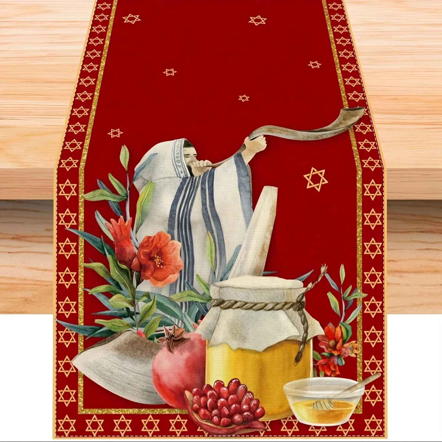 Shana Tova Linen Table Runner Jewish New Year Decorations Rosh Hashanah Honey Pomegranate Table Runners Holiday Home Party Decor