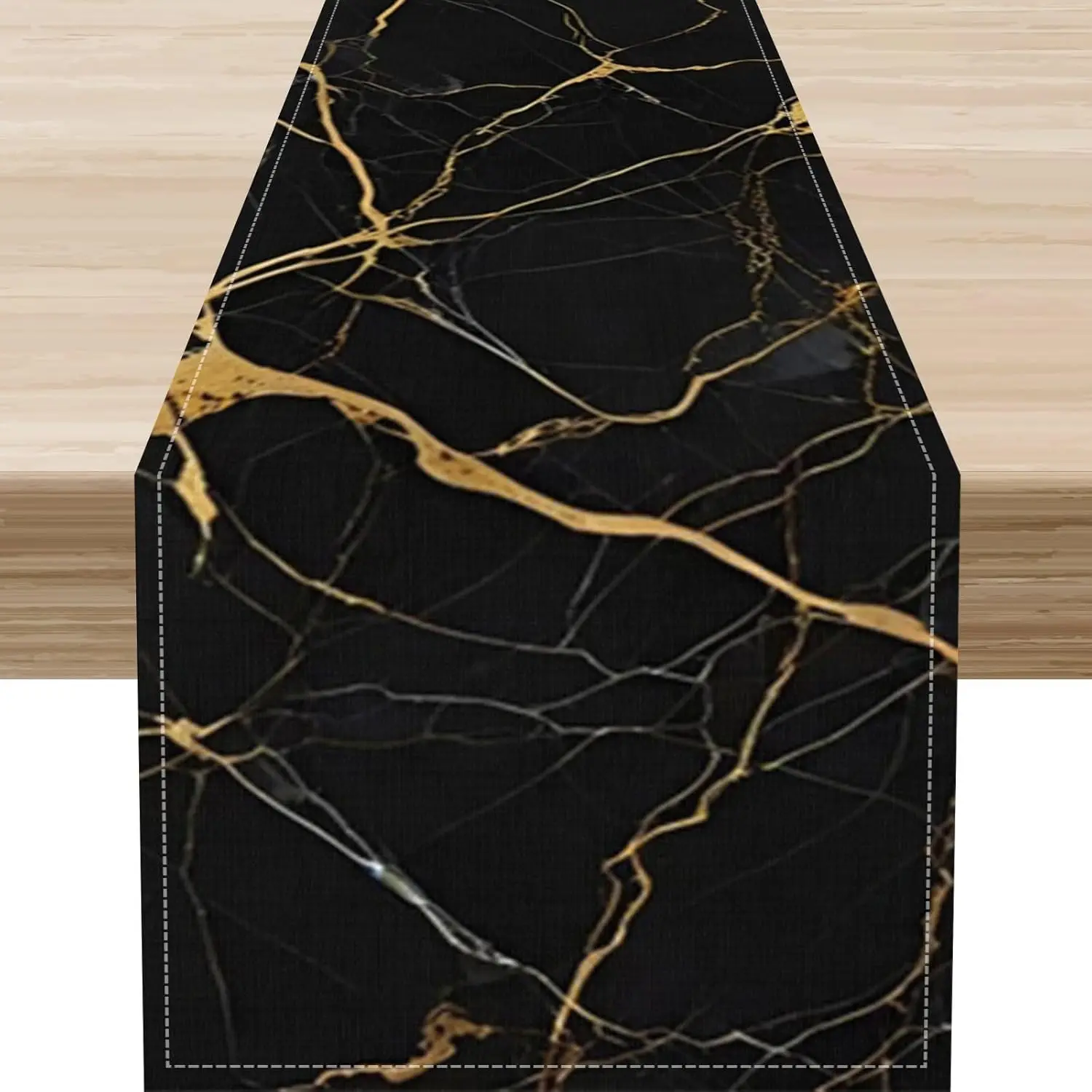 Black Gold Marble Linen Table Runner Dresser Scarves Table Decor Washable Kitchen Dining Table Runner Holiday Party Decor