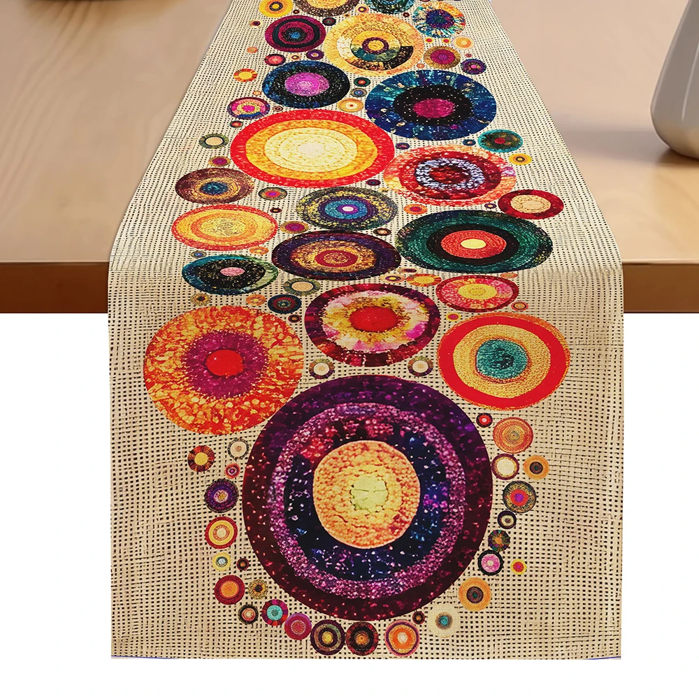 1pc Bohemian Art Table Runner, Vintage Circular Pattern, Suitable for Dining Room and Kitchen, Home Party Decoration, Faux Linen