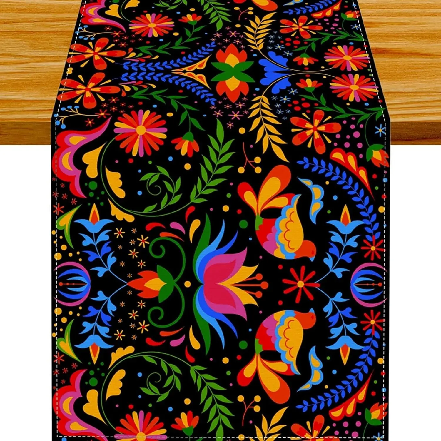 Mexican Linen Table Runners Dia De Los Muertos Altar Decorations Mexican Day of The Dead Flowers Fiesta Table Runner Party Decor