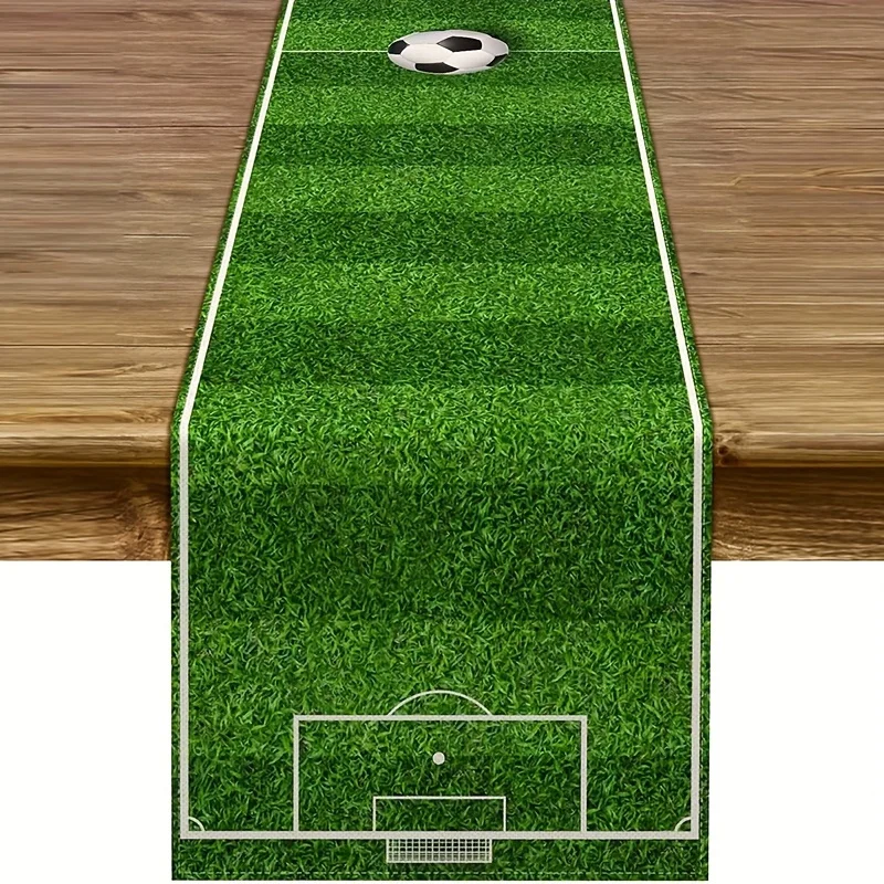 Soccer Theme Linen Table Runner Sport Party Decorations Green Football Field Pattern Table Runners Kitchen Dining Table Decor