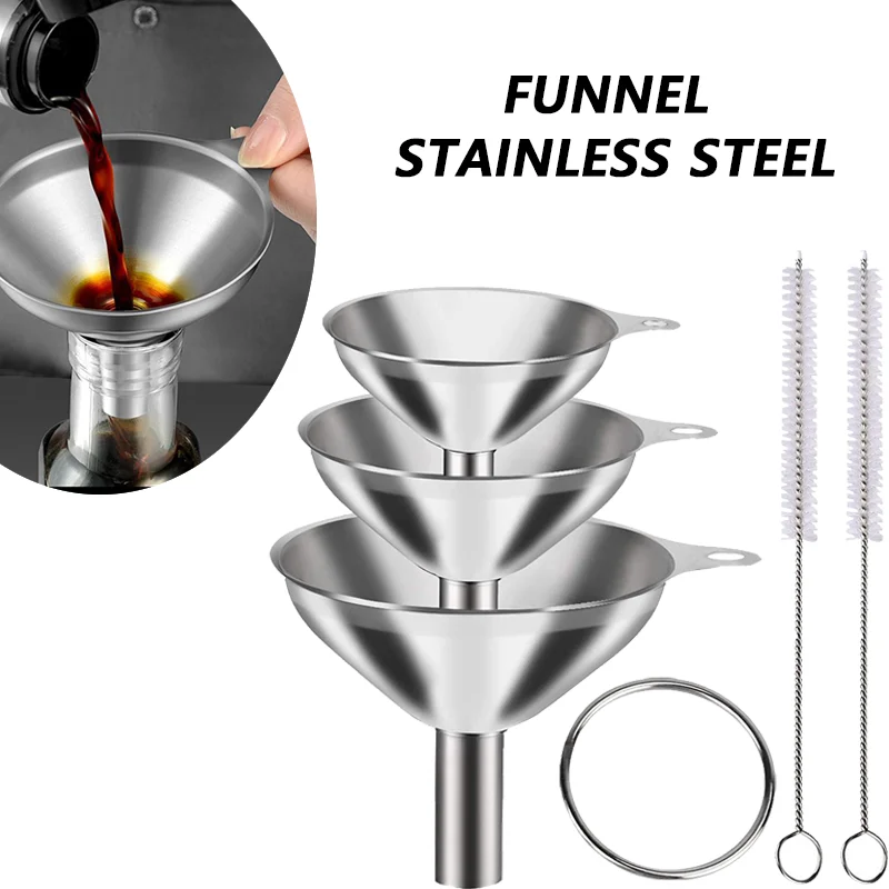 3/5 Pcs Stainless Steel Kitchen Funnels Set Food Grade Metal Funnels for Filling Bottles Small Funnels for Essential Oil Spices