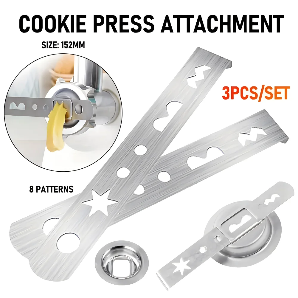 3Pcs Pastry Attachment 8 Patterns Biscuit Attachment Stainless Steel with Connection Ring Biscuit Mould for Size 5 Meat Grinder
