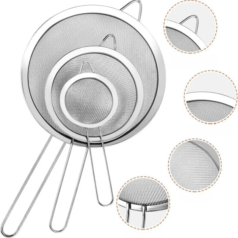 3PCS Stainless Steel Strainer for Soy Milk Bird's Nest Egg White Separation Flour Sifter Baking Tools Oil Filter Net