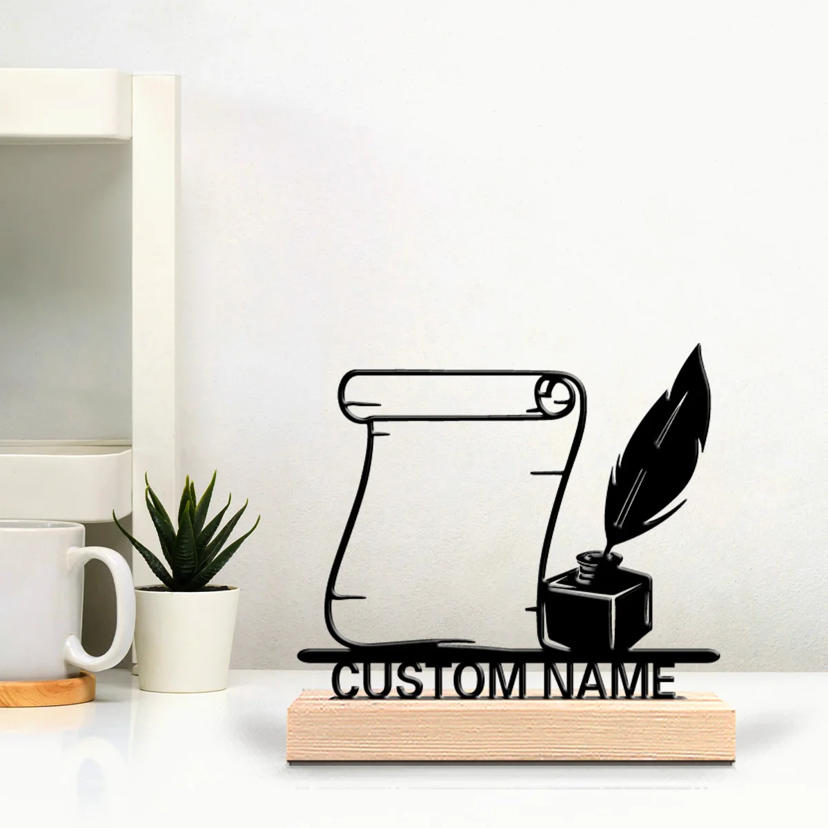 1pc Stylish Personalized Custom Author Metal Statues Metal Art With Wooden Base Ideal For Writers, Graduation, Retro Style