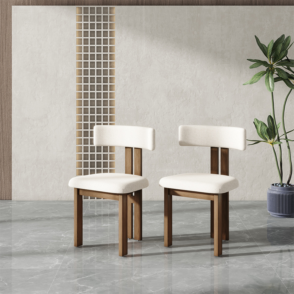 Modern Minimalist White Armless Dining Chairs(Set of 2), Lamb Fleece, Ash Wood Veneer