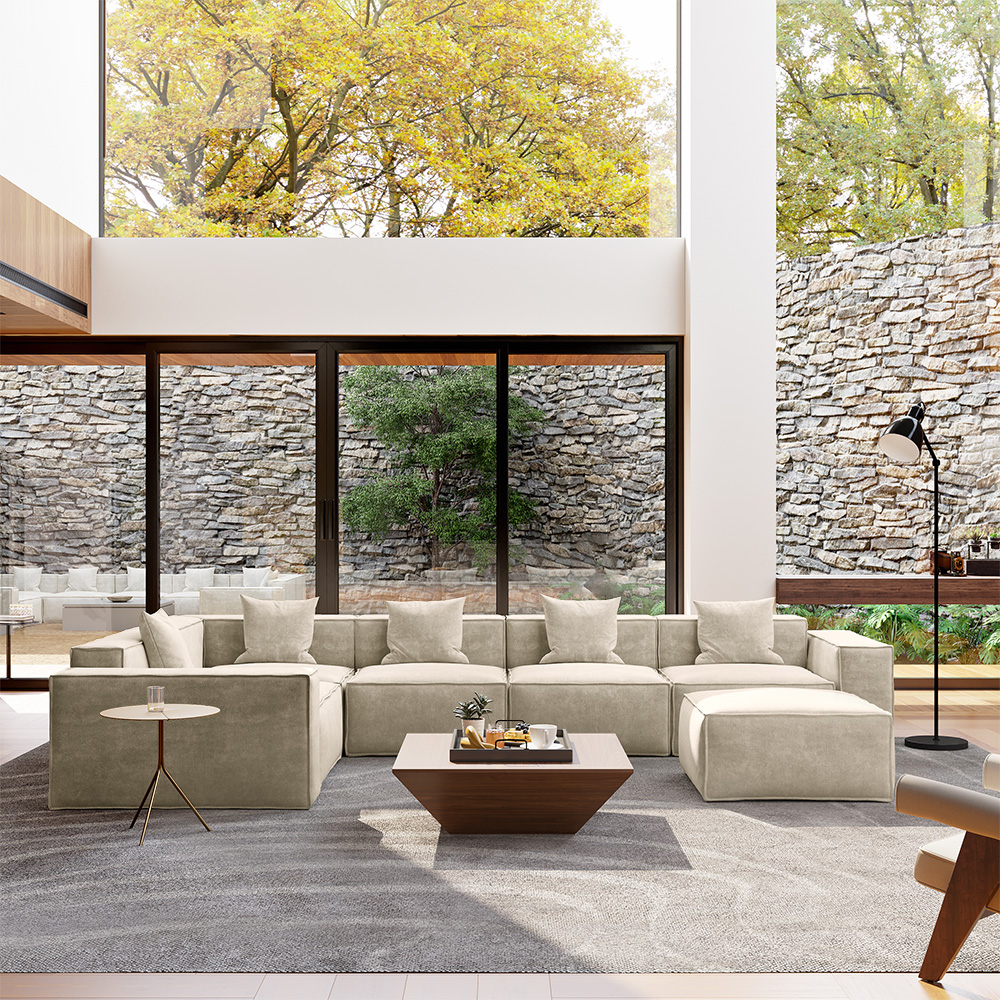 143.30" Modular Sectional Sofa, L-Shape Sofa with Couch Ottoman, Oversized Sofa, Anti-scratch and Water-proof, Beige