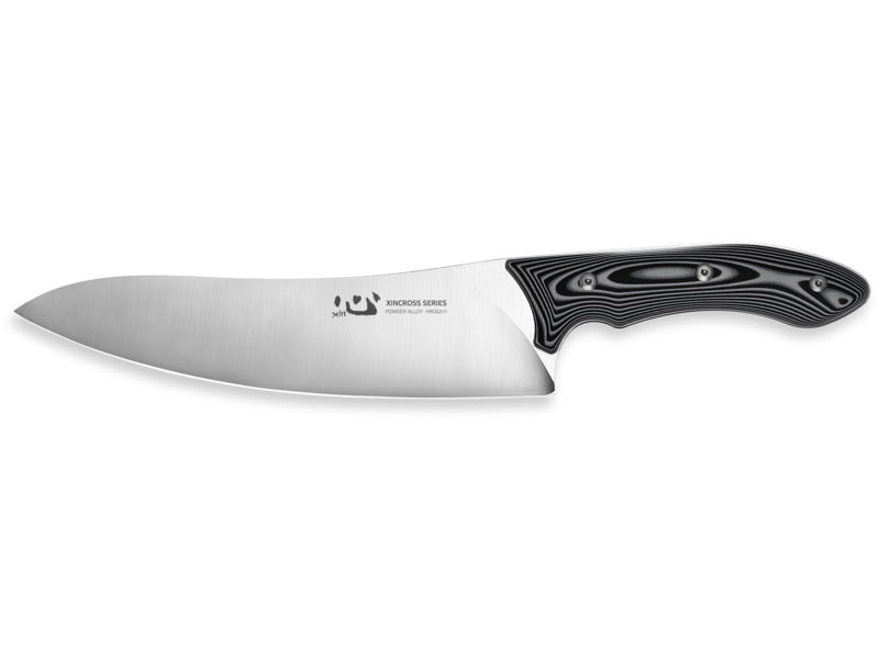 Xin Cutlery XinCross Tactical Chef's Knife 14.25in Overall 8in Satin Special Powder Alloy Blade Black/White G10 Handle Leather Sheath XC110