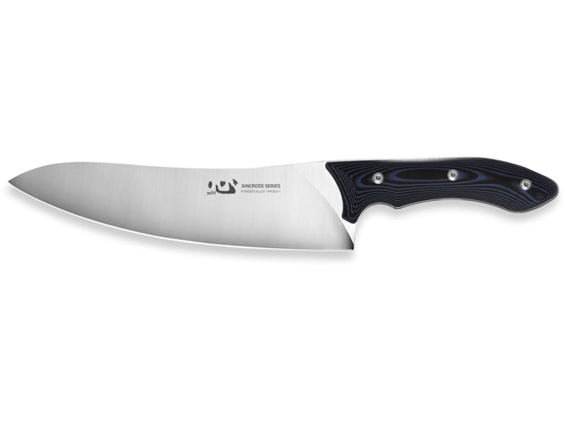 Xin Cutlery XinCross Tactical Chef's Knife 14.25in Overall 8in Satin Special Powder Alloy Blade Black/Blue G10 Handle Leather Sheath XC112