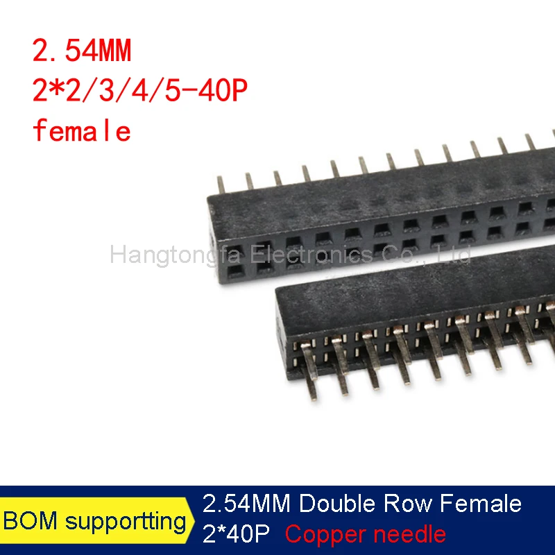 10PCS 2.54MM PITCH double Row Straight FEMALE PIN HEADER Copper needle 2 X 2 3 4 5 6 8 10- 40 PIN Strip Connector Socket 2*40p