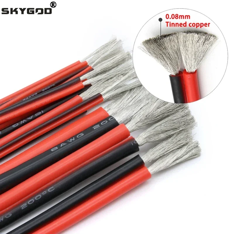 1/2/5M Copper Wire Silicone Rubber Cable Soft 30 28 26 24 22 20 18 16 14 12 10 8 AWG 2Pins Flexible DIY LED Connector Black Red