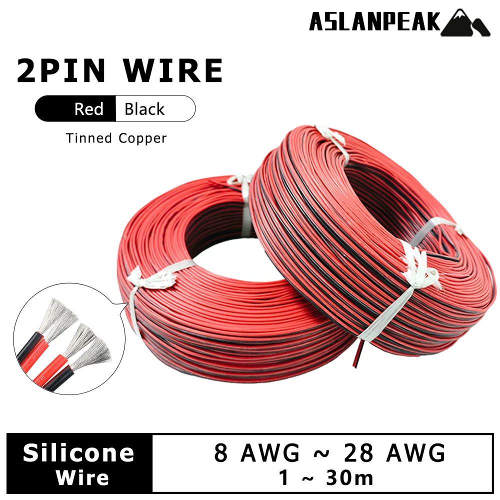 Silicone wire Double Silicoen cable Electrical wires 2 Pin Electric cable Flexible wire Black Red Power Extension cord For Car